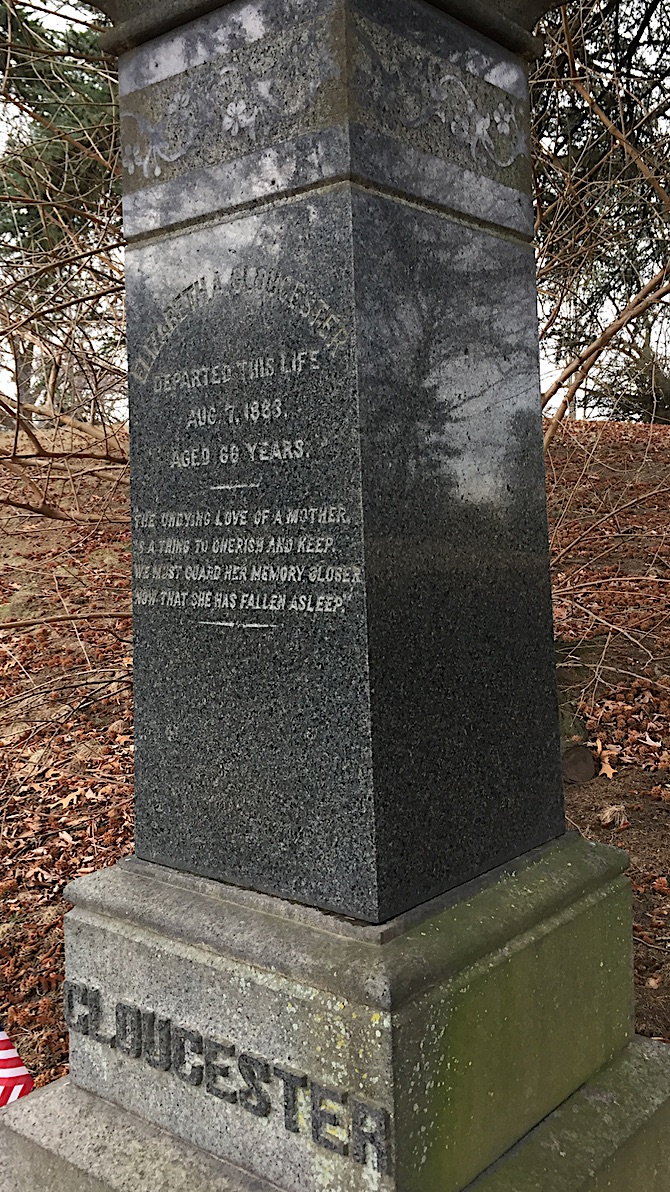 Elizabeth Gloucester (1817-1883) (section 31, lot 9817) was a remarkable African American woman. She was a self-made real estate tycoon, described in her Brooklyn Eagle obituary as the wealthiest woman of color in America. She used that wealth to support causes dear to her heart and her race: the work of Frederick Douglass, the Colored Orphan Asylum, the Siloam Church (her husband was its minister; she donated money for it to purchase land in what is now downtown Brooklyn and to build its church there) and John Brown (as he prepared for his ill-fated raid on Harpers Ferry, Virginia, aimed at triggering a slave rebellion across the South to end slavery).