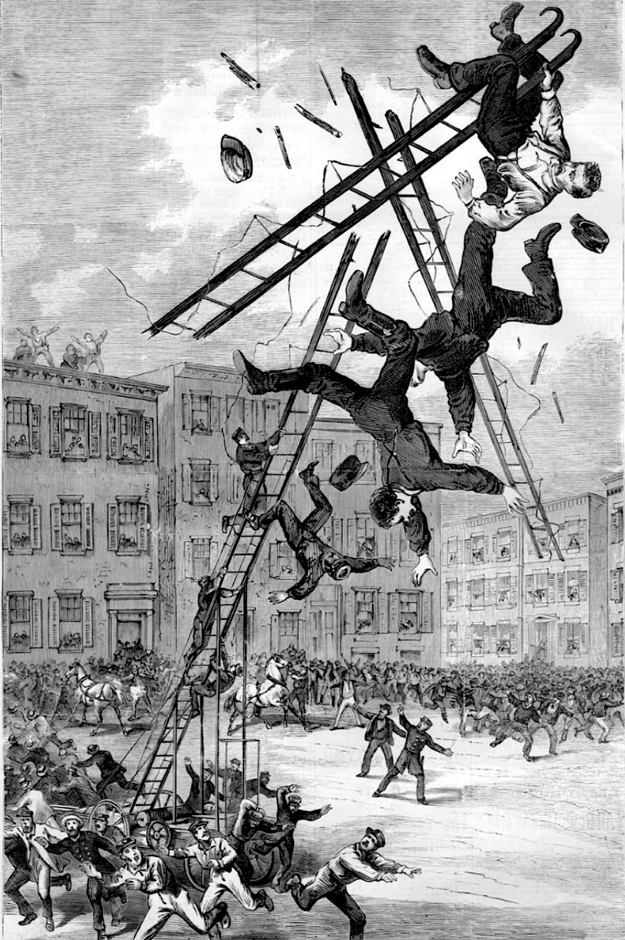 After the war, he joined the New York City Fire Department and quickly rose to battalion chief. He received the department’s highest award when, without the protection of a hose-line, he rescued two children from a fire. On September 14, 1875, he and his men were assigned to publicly demonstrate a poorly-constructed prototype of an aerial ladder. He once again took command, reassuring his men by demonstrating his own courage, leading them up the ladder. Tragically, when he reached the top, the ladder collapsed and he and two other firemen fell almost 100 feet to their deaths.