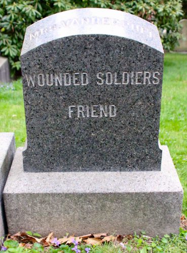There were those who led because they saw a need that no one else was filling. During the Civil War, Ann Priscilla Vanderpoel (1814-1871) (section 74, lot 1785) helped found the Ladies Home U.S. Hospital on Lexington Avenue and 51st Street in Manhattan in April of 1862 to treat wounded and diseased soldiers. For her work, she was known as “The Florence Nightingale of New York.” On Decoration Day, 1876, a delegation of veterans of the Civil War, who remembered her dedication to them and their comrades, visited her grave and adorned it with an American flag.