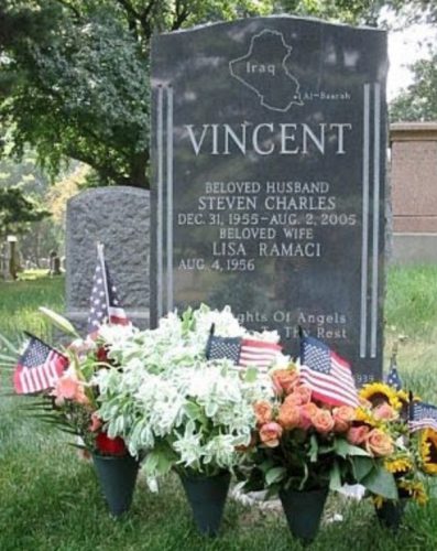 On 9/11, Steven Vincent (1955-2005) (section 73, lot 44939) was living in the East Village, working as an art critic. After the attacks that day on the World Trade Center and the Pentagon, he left everything and went to Iraq to report the real story of what was going on there. On July 31, 2005, his op-ed piece, “Switched Off In Basra,” appeared in The New York Times. In it, Steven reported on the dominance of religion-based militias in Basra, and “. . . that there is even a sort of ‘death car’: a white Toyota Mark II that glides through the city streets, carrying off-duty police officers in the pay of extremist religious groups to their next assignment.” Two days later, on August 2, Steven and his interpreter were kidnapped on the street by four or five men, dressed in police uniforms, driving a white car. Both Steven and the interpreter were shot several times; Steven died that night, but the interpreter survived.