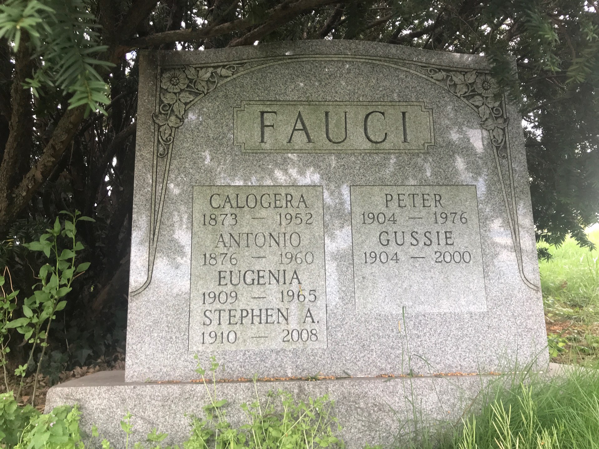 His family is interred at Green-Wood in section 6, lot 35792. Here is the central monument in the Fauci family’s lot: