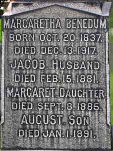 Benedum is listed as a broker at 180 Essex Street in the 1875-1876 and 1876-1878 New York City Directories. He died from a skull fracture. His last residence was 62 Broad Street in Manhattan. Margaretha Benedum, his widow, who is interred with him, filed for a pension in 1892, certificate 366,095. On July 3, 1905, his remains were moved to the present location. Section 207, lot 32048, grave 1.