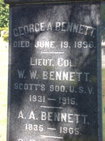 In civilian life, Bennett returned to the piano business and was financed by Cornelius Vanderbilt in manufacturing the first automatic pianos and organs. He also wrote books on land taxation and was a member of the Edwin D. Morgan Post #307 of the G.A.R. His last address was 161 West 108th Street in Manhattan, where he died of senility at age 85. Section 152, lot 19006.