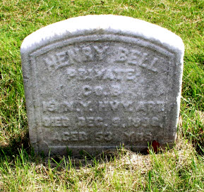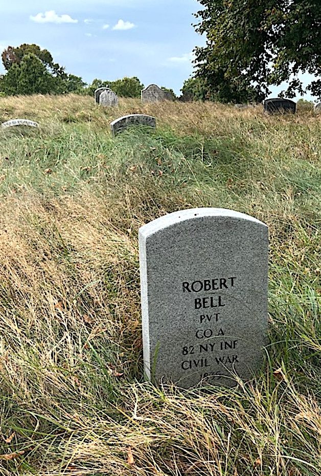 Although some records indicate that Bell deserted on July 22, 1865, that appears to be incorrect: he applied for and was granted an invalid pension in 1890, certificate 751,903. In civilian life, he was employed as a marble-polisher according to the 1880 census. Bell last lived at 259 Third Avenue in Brooklyn. His death was attributed to tuberculosis. Bridget Bell, who is interred with him, applied for and received a widow’s pension in 1898, certificate 489,962. Section 135, lot 27263, grave 838.