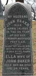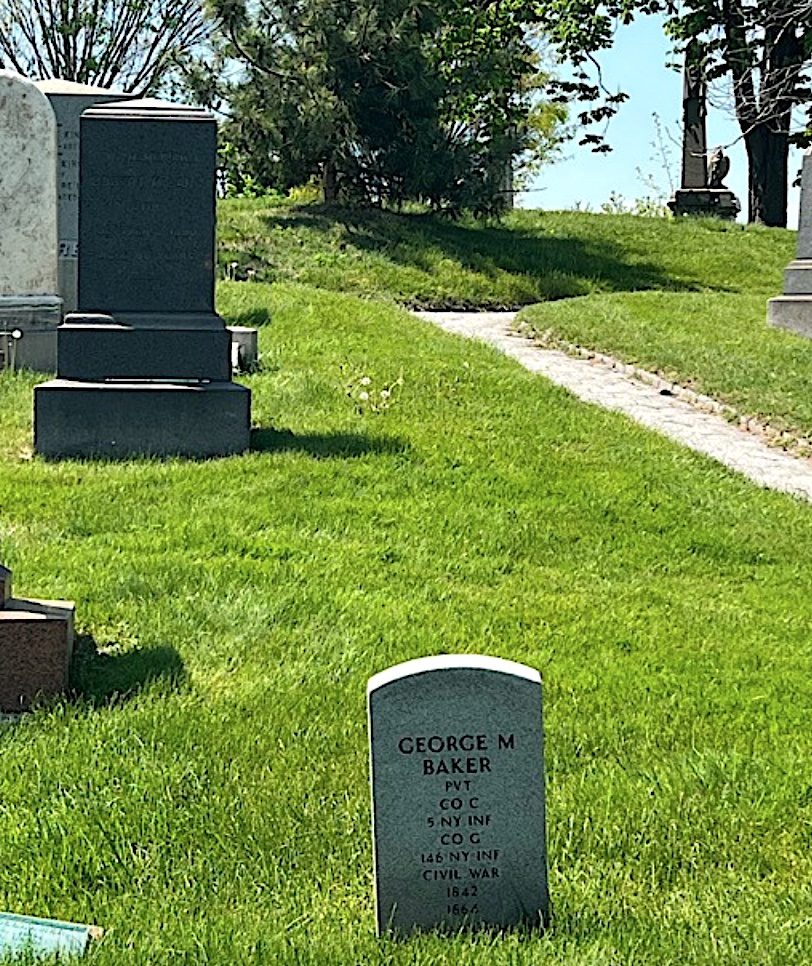 Baker was a member of the Mansfield Post #35 of the G.A.R. He last resided at 247 Hooper Street in Brooklyn, New York. He died from heart disease. In 1890, Ella W. Baker, who is interred with him, applied for and received a widow’s pension, certificate 323,513. In 1912, an application for a minor’s pension was filed under application 990,440 but there is no certificate number. Section 65, lot 11076.