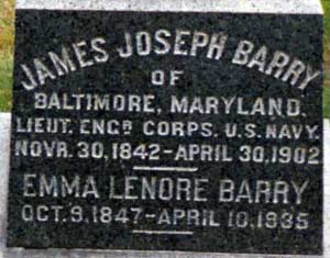 Baker received a pension from the Navy, certificate 40,169. He last lived at 699 Putnam Avenue in Brooklyn. He died from heart disease. In 1911, his widow applied for and received a pension from the Army, certificate 734,340. (The pension number for his widow was the same on the Army and Navy records.) Section 137, lot 29235.