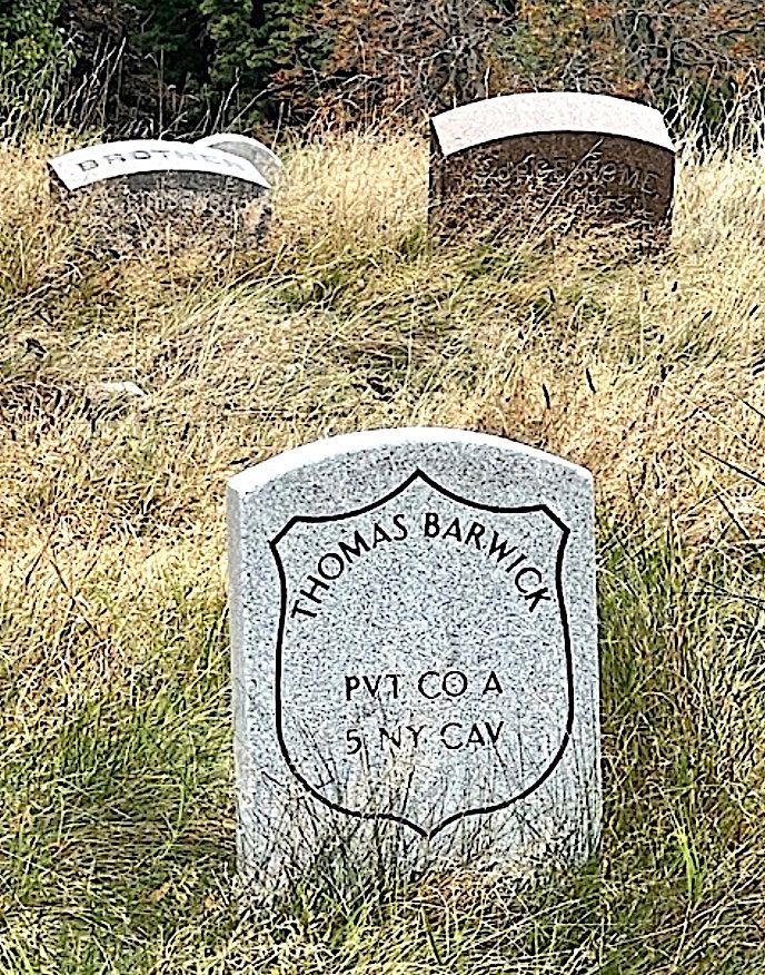 Barley continued his service when he was appointed to the Veteran Reserve Corps on December 8, 1863. Initially serving as captain of the 10th Regiment, he was transferred to the 159th Company, Second Battalion, on August 1, 1864, assigned to the 5th Independent Company on December 23, 1865, and discharged on August 20, 1866. His application for an invalid pension was granted under certificate 77,596. His last residence was 917 St. Marks Place in Brooklyn. He died from cancer. In 1911, Elizabeth Barley, applied for a widow’s pension, application 976,227. Section 146, lot 22276.