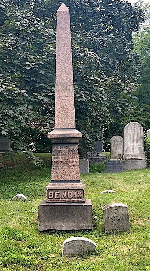 Bendix then was active recruiting and training soldiers for New York regiments. He was brevetted brigadier general of United States Volunteers on March 13, 1865, “for gallant and meritorious services during the War.” In November 1865, he organized the 3rd Regiment, known as Bendix’s Zouaves and remained active in that unit until 1871. A Freemason in civilian life, he resumed his trade as a patternmaker after the War. Bendix is listed as working in models in the New York City Directory for 1875-1876 and as a machinist in the New York City Directory for 1876-1878; both directories note that he worked on Franklin Street, corner of Centre Street. The latter directory reports that he lived at 77 Bank Street. G.A.R Post # 402 is named in his honor. His last address was 77 Bank Street in Manhattan. The cause of death was paralysis. Section 63, lot 7278.