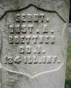 BOETTNER (or BATTNER, BOETNER), GUSTAVE (or GUSTAV) A. (1843-1907). Private, Captain Kowald’s Independent Illinois Volunteers; sergeant, 134th Illinois Infantry, Company I. A resident of Chicago, Boettner first served in a company of Captain Kowald’s Independent Illinois Volunteers for three months in 1861. Subsequently, he re-enlisted as a private on May 11, 1864, mustered into the 134th Illinois on May 31, was promoted to sergeant at some point, and mustered out after 100 days on October 25 at Chicago.