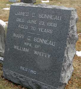BONNEAU, JAMES C. (1838-1908). Private, 8th Regiment, New York State National Guard, Company C. Bonneau enlisted at New York City on May 29, 1862, mustered into the 8th Regiment on that date, and mustered out on September 10, 1862, at New York City. In 1896, his application for an invalid pension was approved, certificate 937,893. His last residence was 80 Thomas Street in Newark. His death was attributed to complications of alcoholism. Section 163, lot 14479, grave 12.