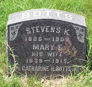 BOTTS, STEPHEN (or STEVEN) K. (or H.) (1836-1909). First lieutenant, 11th New York Cavalry, Company B; second lieutenant, 42nd New York Infantry, Company F; private, 11th New York Infantry, Company E. A native of England, he enlisted as a private on April 20, 1861, at New York City, mustered into the 11th New York on May 7, and was discharged on August 5 of that year for promotion to second lieutenant upon his transfer to the 42nd New York Infantry that day. On August 22, 1862, he re-enlisted as a private at Washington, D.C., and mustered into the 11th New York Cavalry but was not assigned to any company. Botts was promoted to sergeant major two days later, and became a second lieutenant by brevet on September 1, the same day he was transferred to Company B. Two months later on November 1, he became a first lieutenant but was not commissioned in that rank. He was dismissed on January 21, 1863. In 1909, his widow, Mary E. Botts, applied for a pension, application 930,653, but there is no evidence of a certificate being issued. Section 85, lot 1594, grave 9.