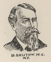 Bristow was a member of the Brooklyn Board of Education from 1880-1889, where a school was named for him. In 1896, he was appointed city magistrate. He served as a Republican in Congress from 1901-1903 after being involved in party politics for many years. Appointed public administrator of Brooklyn in 1904, he served in that position until his death. Active in many community organizations, he was a Freemason and member of the Ulysses S. Grant Post #327 of the G.A.R. He received a veteran’s pension and his wife was granted a widow’s pension under certificate 710,895. Bristow last resided at 18 Polhemus Place in Brooklyn. He died from nephritis. Section 148, lot 19908.