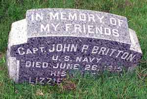 In 1873, Britton was a captain of the hold on the Tigress, a steamer that left from the Brooklyn Navy Yard and ultimately rescued the Polaris, a ship that was stranded off the coast of Newfoundland on an expedition to the North Pole. At the time of his re-enlistment for three years at New York on June 24, 1890, he was a 5’7″ tall mariner with gray hair on a balding head, fair skin and two tattoos, one of a girl and another of a shield of the United States. Britton received a pension from the Navy reflecting both his service in the Civil War and service of about 30 years in the Navy, certificate 24,873. He last lived at 59 East 4th Street in Brooklyn. His death was caused by nephritis. In 1918, his widow was awarded a pension from the Navy, certificate 840,850. Section 126, lot 16874, grave 128.