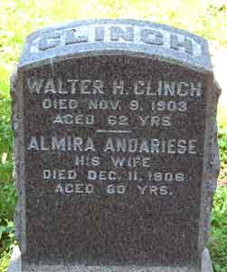 CLINCH, WALTER H. (1841-1903). Private, 22nd Regiment, New York State National Guard, Company F. A native New Yorker and a clerk at the time of his enlistment, he served for 30 days in the 22nd New York National Guard in 1863. According to the censuses of 1870 and 1880, he worked as a clerk; the Brooklyn Directories for 1875-1876 and 1876-1878 also note that he was employed as a clerk. The Brooklyn Directory for 1888-1890 states that he was employed as a printer Brooklyn Directory for 1890-1892 indicates that he was a clerk. He last lived at 95 Utica Avenue in Brooklyn. He died from apoplexy. Section 76, lot 2657, grave 11.