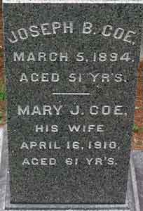 COE, JAMES (1826-1891). Paymaster, United States Navy, Medical Department. Coe was born in New York. As per the Veterans Schedule for 1890, Coe served as a paymaster in the Medical Department of the United States Navy during the Civil War; that document indicates that he served for three years but gives no specific dates. The 1870 census reports that he lived in Brooklyn with his three children, was employed in real estate, and had a personal estate valued at $500. His wife, Luella Coe, who is interred with him, died in 1879. He last lived at 730 Lafayette Street in Brooklyn, the same address listed on the Veterans Schedule of 1890. His death was attributed to paresis. Section 89, lot 9782.