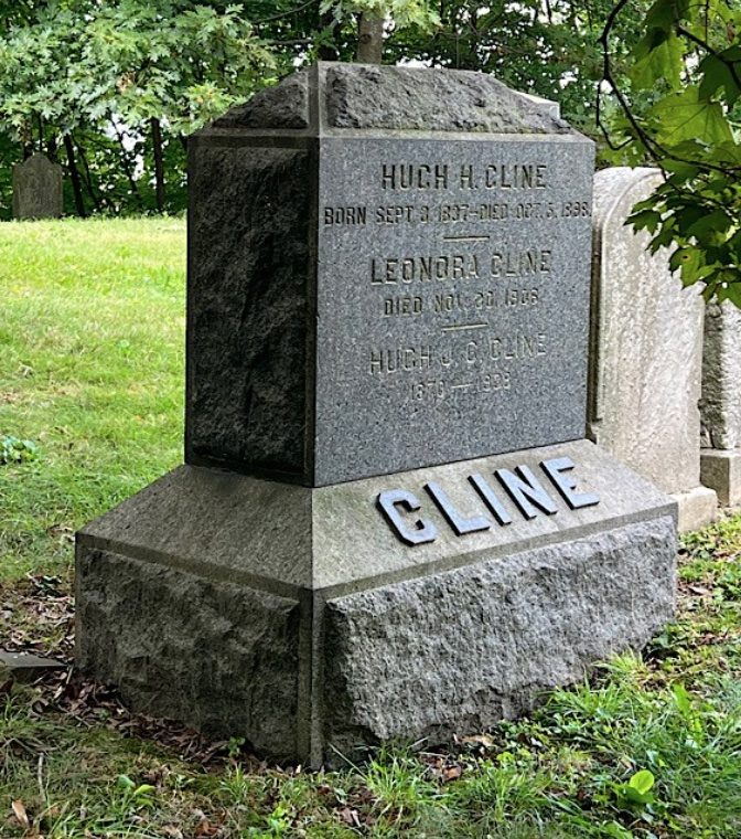 In his report of July 26, 1894, R. W. Meade noted that Cline suffered an attack of “hysteria” while on board the Mohican in July 1885 at which time he had a headache and partial paralysis of the right hand and arm resulting in time off from duty for a week. In October 1893, onboard the Charleston, he suffered from vertigo for four days and then, while on the Charleston in May 1894, he was placed on the sick list with “neurasthenia,” a term no longer in scientific use, describing a condition of the nervous system that affected memory, and caused nervousness, and despondency. On June 4, he was declared “unfit for duty.” His last residence was 634 Greene Avenue in Brooklyn. He died after an operation for cancer of the tongue at Long Island College Hospital in Brooklyn. Leonora Cline, who is interred with him, received a widow’s pension of $30 a month from the Navy in 1898, certificate 13,078. The pension document states that Cline retired as a chief engineer with relative rank of lieutenant commander. Section 63, lot 7411, grave 1.