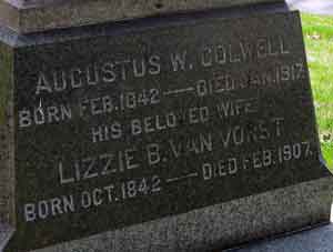 He was a member of the John A. Dix Post #135 of the G.A.R.; in 1886, he held the position of commander. In 1907, his application for a pension was successful, certificate 1,140,570. He was a charter member of the American Society of Mechanical Engineers. As per his obituary in the New York Tribune, members of the Dix Post were invited to attend his funeral. His last residence was on Arlington Avenue and 227th Street in the Bronx. Colwell died from diabetes. Funeral services were held at the home of his son, James, who lived at 1765 Sedgwick Avenue in the Bronx. Newspapers in Havana, Cuba, were asked to post a notice of Colwell’s death. Section 7, lot 9526, grave 2.