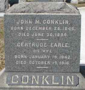 Conklin is identified as being in the dry goods business at 144 Atlantic Avenue in the 1867-1870 Brooklyn Directory; during those years, he lived at 377 State Street. The 1870 census identifies him as a dry goods dealer. On February 1, 1899, he opened a large dry goods store, John M. Conklin & Son, with an extensive inventory of women’s hats and clothing, at 486 Fulton Street in downtown Brooklyn. An article about the opening of the establishment appeared in the Sag-Harbor Express, where he was a frequent visitor for 30 years.Conklin died from tuberculosis. He last lived at 219 Berkley Place in Brooklyn.