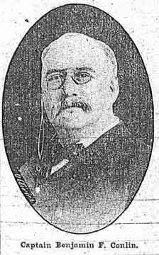 In an article in the New York Evening Post on August 13, 1896, it was reported that there was a problem at Madison Square Garden when William Jennings Bryan, as a Presidential candidate appeared and there was only one entrance. Several people with passes had difficulty getting through the police line; crowds numbered in the thousands on a very torrid night. Conlin, who promised to investigate the incident was praised by William P. St. John, treasurer of the Democratic National Committee and National Silver Party, for the excellent order preserved by the police without serious injury. St. John presented Conlin with autographs of Mr. and Mrs. Bryan and Arthur Sewall, the Vice-Presidential candidate. One of Conlin’s last duties in the Police Department was to make sure that all aspects of the transition to the consolidated Greater New York as of January 1, 1898, regarding the police were in place. He retired in August 1897 with a pension of $3,000 per year.