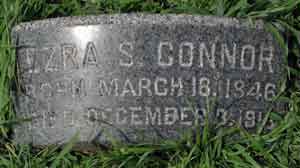 According to the census of 1900, he was a broker by trade. In 1906, his application for an invalid pension was granted, certificate 1,128,349. The stock exchange firm, Connor & Co., at 31 Nassau Street in Manhattan, which he headed with his brother, Washington E. Connor, failed in 1912. According to Washington Connor, the collapse of the enterprise was due to Ezra’s mental breakdown, a decline noticed for several months. Washington Connor, a friend of the magnate Jay Gould, lost his summer home and property to foreclosure in March 1913. Ezra Connor last lived at 15 Columbia Avenue in Arlington, New Jersey. His cause of death was chronic nephritis. Section 154, lot 23711, grave 6.
