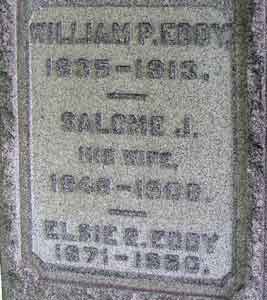 A personal description written on a notarized passport application in 1872, indicated that Eddy was 5′ 9½”tall, with a bony face characterized by blue eyes, brown hair, broad forehead, a prominent nose, and a small mouth and chin. He was a manufacturer of cotton goods in Providence, Rhode Island, and then became a member of the B. G. Arnold & Co. coffee and tea firm in New York City. The 1880 census listed him as a retired merchant who was living in Brooklyn. His last residence was 106 Sixth Avenue, Brooklyn. His death was caused by nephritis. Section 196, lot 30998, grave 1.