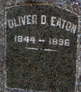 EATON, OLIVER D. (1844-1896). Private, 28th Maine Infantry, Company B. A resident of Farmington, Maine, his birthplace, Eaton enlisted and mustered into the 28th Maine Infantry on October 10, 1862, and mustered out on August 31, 1863, at Augusta, Maine.