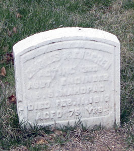 FARON, EDWARD (1824-1889). Machinist, United States Navy. Faron, a New York City native, lived in Orange, New Jersey, from the age of 15. He served in the United States Navy in the Mexican War, taking part in the Battle of Vera Cruz and its capture. A nationally renowned mechanical engineer, he designed ships and used his skills during the Civil War when he supervised the building of the USS Monitor for the United States Navy. He was the master machinist at the Brooklyn Navy Yard, a position previously held by his brother and father. He subsequently designed iron steamers and other vessels for John Roach, a naval contractor whose company in Chester, Pennsylvania, built ships for the Rio Janeiro line. His last residence was in Orange, Essex County, New Jersey. Faron succumbed to neck cancer. Section 102, lot 3242.