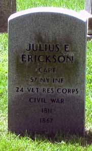During the Civil War, Joseph Ebling enlisted at Albany, New York, as a quartermaster on July 23, 1862, was commissioned into the Field and Staff of the 164th New York that same date, and tendered his resignation on October 2 of that year. He last lived in New York City at the foot of East 121st Street and the Harlem River. His death was caused by heart disease. Section 2, lot 4064.