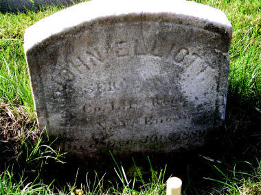 On October 22, 1866, Elliott became a naturalized citizen. His naturalization papers, the censuses of 1870 and 1880 and the Brooklyn Directory for 1876 all list his occupation as lithographer. In 1882, he applied for and received an invalid pension, certificate 483,332. He last lived at 307a 16th Street in Brooklyn. The cause of his death was edema of the lungs (excess fluid in the lungs). Charlotte Elliott, who is interred with him, applied for and received a widow’s pension in 1890, certificate 354,353. Section 6, lot 20118, grave 528.