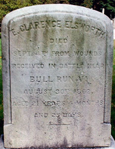 EASTON, ALFRED H. (1835-1871). Corporal, 7th Regiment, New York State Militia, Company H. Born in New York State, he enlisted as a private and served with Company H of the 7th Regiment for 30 days in 1861. A year later, he re-enlisted as a corporal on May 25, 1862, mustered immediately into the same regiment and company, now part of the New York State National Guard, and mustered out after three months on September 5 at New York City. His last residence was 14 Washington Place in Manhattan. He died of pneumonia. Section ?, lot ?.