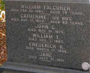 FALCONER, JOHN A. (1815-1872). Captain, 79th New York Infantry, Companies D and A. Of Scottish birth, he enlisted at New York City and mustered into the 79th on May 15, 1861, with the rank of second lieutenant. He rose through the ranks to first lieutenant, became a captain on August 1, 1861, was transferred to Company A on October 9, 1861, and was discharged for disability on March 1, 1862. He last resided on West St. Paul’s Avenue in Jersey City, New Jersey. The cause of his death was dropsy (edema). Section 186, lot 18818.