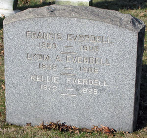 The 1868 Jersey City Directory lists Edwards as a bookkeeper. The 1870 census and the 1872 Jersey City Directory note that he lived in Jersey City, New Jersey, and worked as a clerk. According to the 1880 census, he was living in Newark, New Jersey, with his wife and children and working as a bookkeeper. He was the brother-in-law of William E. Olssen (see). As per his obituary in the New York Herald, he was an employee of the Broadway Insurance Company in New York City. His obituary in the New York Sun notes that his funeral was held at the Reformed Church in Woodside, New Jersey, where he last lived. Section 101, lot 4436.