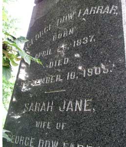 According to an article in the Brooklyn Daily Eagle on September 9, 1906, Mrs. Sarah Farrar, a summer resident of Great Barrington, donated a permanent fund of $100 a year to the Searles High School there for a student who excelled in Latin and for another student who demonstrated academic excellence in another subject to be determined by a school committee; the awards were to be named the George Dow Farrar prizes in honor of her husband. In addition, she founded the George Dow Farrar Home and School for Nurses in New Brighton, Staten Island, in 1907. Her original gift of $25,000 was supplemented by a bequest of $30,000 after her death in 1914 to maintain and support the home. An article in The New York Times on May 21, 1914, notes that Mrs. Farrar left $250,000 to charity and $30,000 in trust for Timothy Connelly, a bellboy at a Great Barrington inn who provided her with prompt and pleasant service. An article in the Springfield (Massachusetts) Union on May 22, 1914, indicates that Mrs. Farrar also paid for Connelly’s 1912 tuition at the Hallock School for Boys in Great Barrington and in the fall of 1913, deeded a local house to him. Connelly went on to graduate from Georgetown University, served in the American Expeditionary Forces in World War II, and was a commander of the South Berkshire American Legion Post. Section 69, lot 3260.