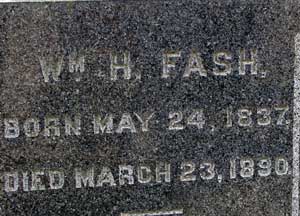 FASH, WILLIAM H. (1837-1890). Private, 15th New York Engineers, Company D. Born in New York State, Fash enlisted as a private at New York City on May 6, 1861, mustered into the 15th Engineers on June 25, and was discharged for disability on September 10, 1861, at Fairfax Court House, Virginia. His application for an invalid pension was granted in 1867, certificate 309,394. As per the 1870 census, he was a butcher living with Mary C. Fash who was “keeping house.” He last lived at 449 West 34th Street in Manhattan. His cause of death was pneumonia. His widow, Annie (Catherine Anne) Fash, received a pension in 1896, certificate 275,469. In 1901, Mary C. Fash, contested and applied for a widow’s pension, application 733,074, but it apparently was not granted. Section 49, lot 7206.