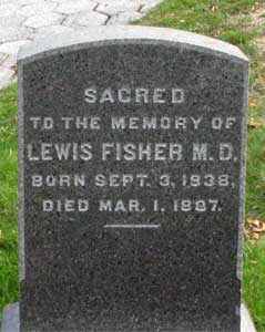 FISHER, LEWIS (1838-1887). Surgeon, United States Army. Fisher was born in Mobile, Alabama, and was a graduate of the College of Physicians and Surgeons. According to his obituary in The New York Times, he enlisted in the United States Army as a surgeon in 1861 and ran the Army Hospital at Chester, Pennsylvania, for the duration of the Civil War until his discharge in 1865. He settled in Morristown, New Jersey, after the War before relocating to New York City. His last residence was 14 West 29th Street in Manhattan. He died of consumption in Jacksonville, Florida, where he went in hopes of restoring his health. Section 22, lot 6975.