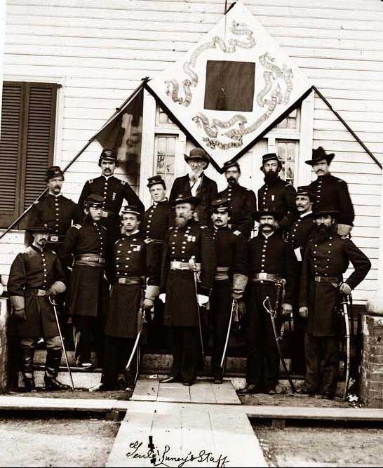FRANK, PAUL (1828-1875). Brigadier general by brevet; colonel, 52nd New York Infantry; first lieutenant and adjutant, 5th Regiment, New York State Militia. Born in Saxony, Germany, on February 7, 1828, as Henry Paul Ferdinand Frank, he enlisted on April 19, 1861, at New York City, as a first lieutenant. On May 1, 1861, he was commissioned into the Field and Staff of the 5th New York State Militia as first lieutenant and adjutant and mustered out on August 7, 1861, at New York City. On October 25, 1861, he was promoted to colonel and was commissioned into the Field and Staff of the 52nd New York Infantry on November 1, the same day that his brother Emil (see) enlisted in that regiment. In the Peninsula Campaign in 1862, he was actively engaged in the Battles of Seven Pines and Fair Oaks (both in Virginia) and in all the battles and engagements during the seven days of fighting. William French praised him in his field report from Fair Oaks, Virginia, on June 3, 1862, for repulsing the enemy. Subsequently, Frank described the action at the Battle of Antietam, Maryland (September 17, 1862), in his report three days later: