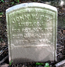 FOWLER, JOHN A. (1817-1873). Private, 174th New York Infantry Company F; 162nd New York Infantry, Company F. A native of Long Island, he enlisted on October 9, 1862, at New York City, and mustered into the 174th New York on November 5. His muster roll notes that he was a seaman by trade who was 5′ 7″ tall with black hair and eyes and a dark complexion. On February 17, l864, he was transferred into the 162nd New York. The 1873 Brooklyn Directory lists him as a seaman. He last lived in Brooklyn at 263 Park Avenue. He died of pneumonia. Section 36, lot 13214.