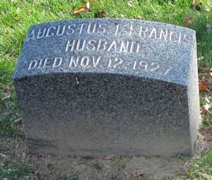 Francis tried his hand in many enterprises including banking, stationery, speculation, and the jewelry business. He was director of the Mercantile Library and chaired its committee to publish a catalogue. Active in many organizations, he was a member of the New-York Historical Society, Lafayette Post #140 of the G.A.R., the Royal Arcanum, the Republican Club of New York, and the National Rifle Association. On March 9, 1886, he was elected captain of Company C of the 71st marking the 25th anniversary of his joining the regiment. In 1904, his application for a pension was granted, certificate 1,099,906. His last home was in Yorktown Heights, New York. A cerebral hemorrhage caused his death. Section 162, lot 14991.