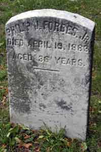 According to the census of 1870, Forker was a clerk for the Brooklyn Bridge Company; he was a bookkeeper according to the census of 1880. In 1892, he sought an invalid pension, application 1,126,500, but there is no certificate number. When his wife Sarah, who is interred with him, died in 1905, her obituary in the Brooklyn Standard Union reported that he was a retired contractor. Forker’s last residence was 693 Degraw Street in Brooklyn. He died of a cerebral hemorrhage. Section 53, lot 6332.