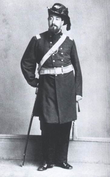 FREEBORN, THOMAS (1842-1886). Captain, 1st New York Mounted Rifles, Companies M, D, and B; private, 7th Regiment, New York State National Guard, Company K. A native New Yorker, Thomas’s father, William Freeborn, was well-known in New York City as the president of the New-York Floating Dry-Dock Company and the head of a successful copper company that bore his name. His uncle, Thomas Freeborn (see), was a pilot onboard the John Minturn, an ill-fated ship destined to New York from New Orleans that ran aground at Mantoloking, New Jersey, during a northeaster on February 14, 1846.