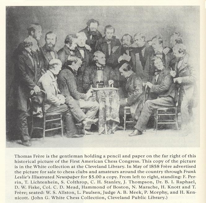 FRÈRE (or FRINE), THOMAS (1820-1900). Private, 13th Regiment, New York State National Guard, Company G. A native of New York City, Frère joined the 13th National Guard in 1845. Most notably, he was a renowned amateur chess player who organized the First American Chess Congress in 1857 in which he played in the minor tournament and introduced the world to Paul Morphy, a chess prodigy, who won the competition. He wrote and compiled Frère’s Chess Handbook in 1858 and Morphy’s Games of Chess. In addition, Frère organized the Brooklyn and Manhattan Chess Clubs and served as secretary of the Brooklyn Chess Club in the 1850s.