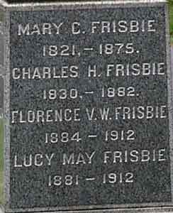 FRISBIE, CHARLES H. (1830-1882). Captain, United States Navy. Frisbie commanded some of the fastest ships sailing out of New York, including one that made the quickest passage between New York and China. Another one of his ships, the Jacob Bell, was captured by a Confederate privateer and burned after Captain Frisbie’s offer to fight a duel for possession of the ship was refused. He then joined the Navy and commanded a gunboat in Admiral Farragut’s squadron during the Civil War. Upon his retirement from the Navy, Farragut presented him with the flag of the ship that he had commanded. His last address was 64 West 55th Street in New York City. Frisbie died of heart disease. Section 16, lot 10636.