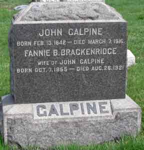Galpine was elected as a prelate in his chapter of the Order of United Friends (O.U.F.), a fraternal organization. According to his obituary in the Brooklyn Standard Union, he was a lifelong resident of Brooklyn and a retired painter. His last residence was 641 Maple Street in Brooklyn. Galpine died from nephritis. Section 5, lot 34436, grave 2.